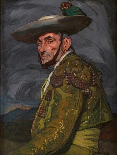 „Kaum ein Künstler hat die Vorstellung, die man sich um 1900 im Ausland von Spanien machte, so sehr geprägt wie Ignacio Zuloaga: stolze Toreros und temperamentvolle Flamenco- Tänzerinnen; Kleinwüchsige, Bettler und Hexen, die das künstlerische Erbe von Altmeistern wie Diego Velázquez, El Greco und Francisco de Goya aufrufen; weite, unter gleißender Sonne verdorrte Landschaften; das einfache Leben der Landbevölkerung. In Zeiten zunehmender Industrialisierung und der beginnenden Orientierung Spaniens an der europäischen Moderne wollte Zuloaga mit solchen Szenen, mit denen er international Erfolge feierte, die »spanische Seele« bewahren.“ (www.kunsthalle-muc.de/mythos-spanien).